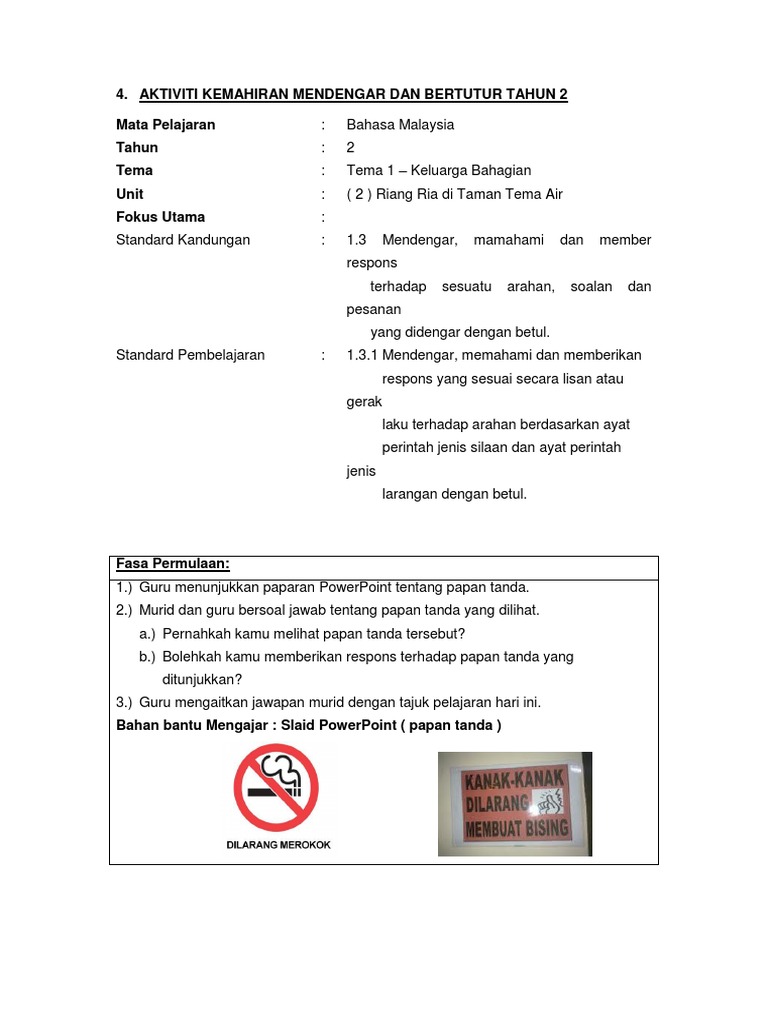 Aktiviti Kemahiran Mendengar Dan Bertutur Tahun 2 Pdf